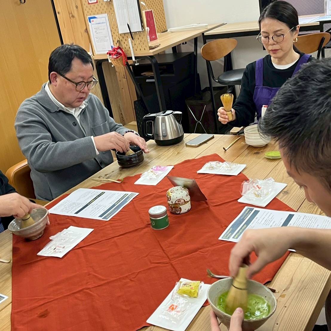 講座では、参加者が実際に抹茶を点てながら心を落ち着ける体験を楽しむ姿が見られ、